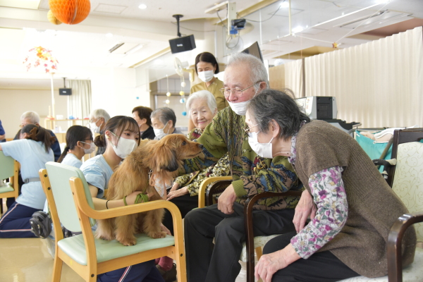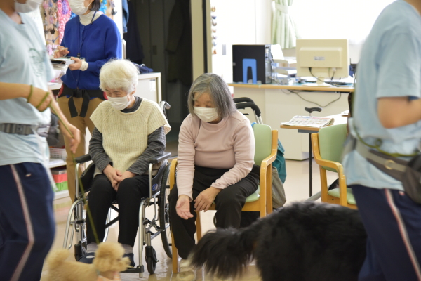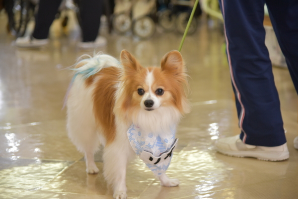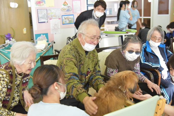 初めは怖がっていたご利用者様もそのお利口なわんちゃんを見て「私もさわりたい」「こっちも来て」と大人気のわんちゃん。とても癒される楽しい一時となりました。