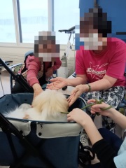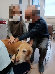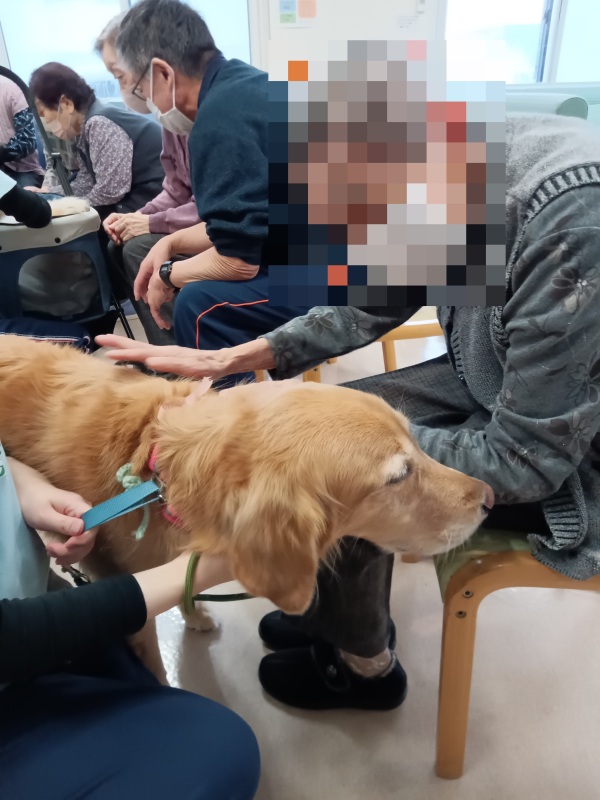 スタッフ日記[ケアハウス] 2025-12-11 ドッグセラピー犬とのふれあい♪ 今日はドッグセラピー犬が来ました! 優しい子ばかりでたくさん触れ合うことができました。入居者さんもニコニコ。わんちゃんの手触りや匂いを感じ、癒されることができたようです♪