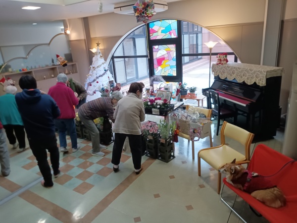 入居者の皆さんも時間をかけて「どんな花を飾ろうかな」と真剣なまなざしで見て頂いています。