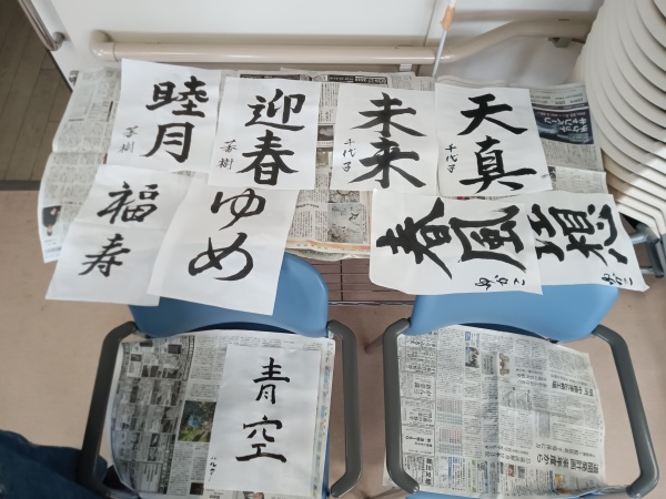 スタッフ日記[ケアハウス] 2026-01-22 書初めを行いました 少し遅くなりましたが書初めを行いました。 書初めにふさわしい晴天日和...とはいきませんでしたが、本日は書初めの会を開催しました。書道をやっていた方も、初めて行われる方も、達筆に書かれていました。