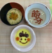 (ミキサー食の方々には、「鬼の顔をあしらったプリン」をお出ししました)