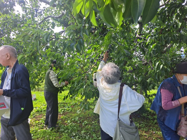 鈴なりになっているプルーンはとても甘く、手でも簡単に取れるので、お持ち帰りの箱もすぐにいっぱいに!