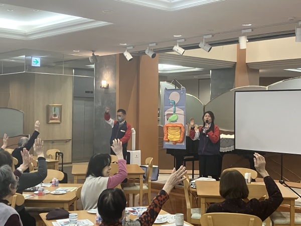札幌ヤクルト販売株式会社様より、腸トレMasterの講師の方が来てくださり「ヤクルト健康教室」が開催されました!健康を維持するためには「腸」を丈夫にすることが重要との事で、健康と腸の関係・免疫についてなどのお話をして頂きました。参加された42名の入居者様からは「勉強になった!」「お土産にヤクルトまでもらえて嬉しかった~」と大変喜ばれていました♪