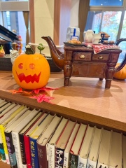 「すっかり秋だね~」「このカボチャの顔は誰が書いたんだろう?」など、