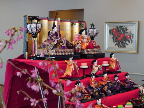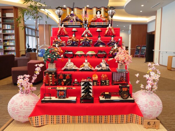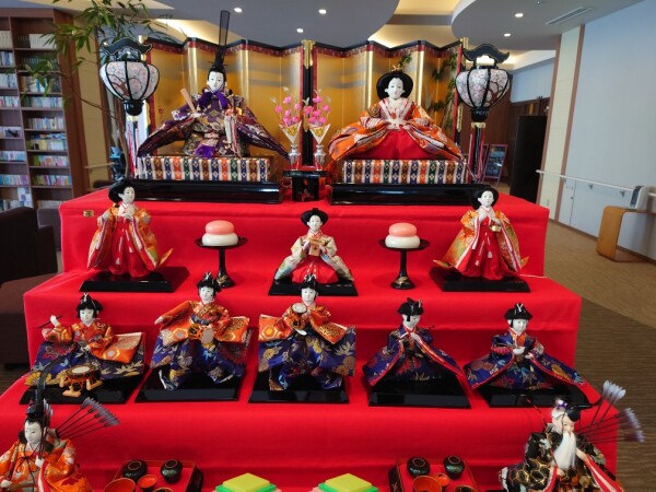 エントランスホールにひな人形を飾りました。
