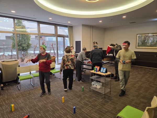 お知らせモルック 2025-12-24 クリスマス・イヴに開催♪ 隔月行っております、らく楽運動クラブの山本先生によるモルック、今回はクリスマスイヴということで負けたチームはクリスマス仮装を!!所長も参加しファインプレーも続出で、大盛り上がりの1時間でした☆ 一覧へ戻る