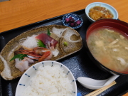 ・刺身(石カレイ、ボタン海老、ブリ~積丹産、ホッキ~道産)