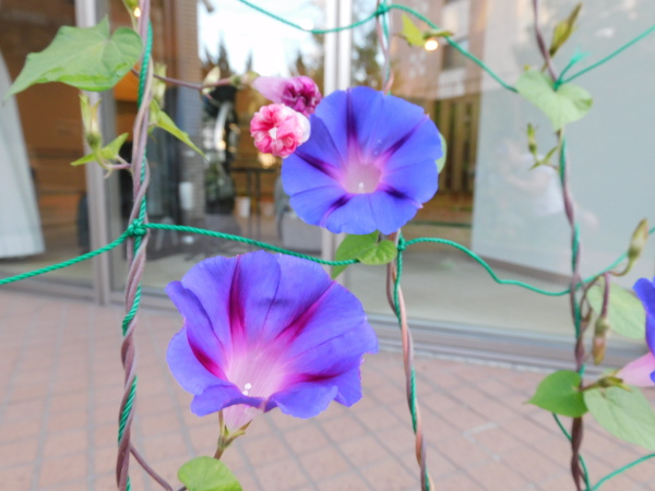 青紫に加え今年はピンクの可愛らしいアサガオも咲きましたよ♪