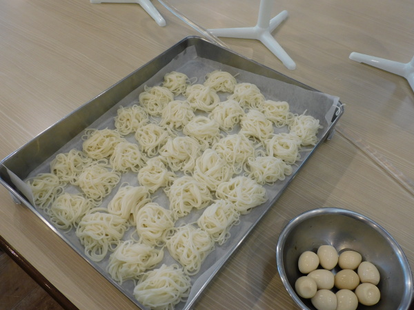 そうめんの他に果物やうずらの卵、代わり種として丸いこんにゃくなど色々な物を流して楽しんで頂きました。