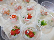 (ひとくちそうめんに付けたトマトの金魚はスタッフ4人で作った力作です!)