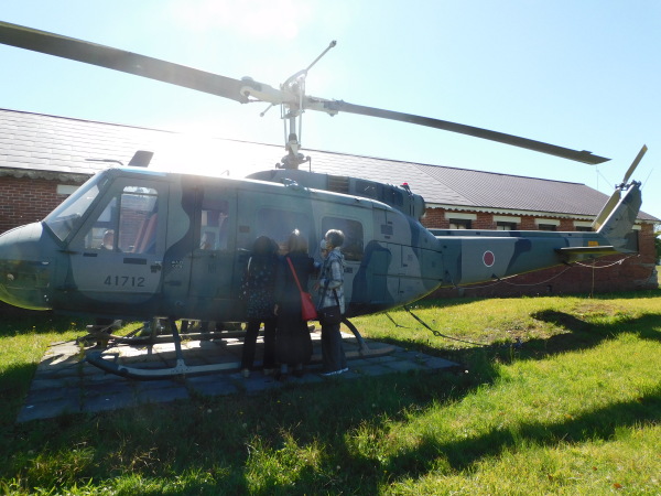 最後は外に展示してある自衛隊ヘリコプターの前で記念写真を撮らせて頂き、資料館見学は終了となりました。